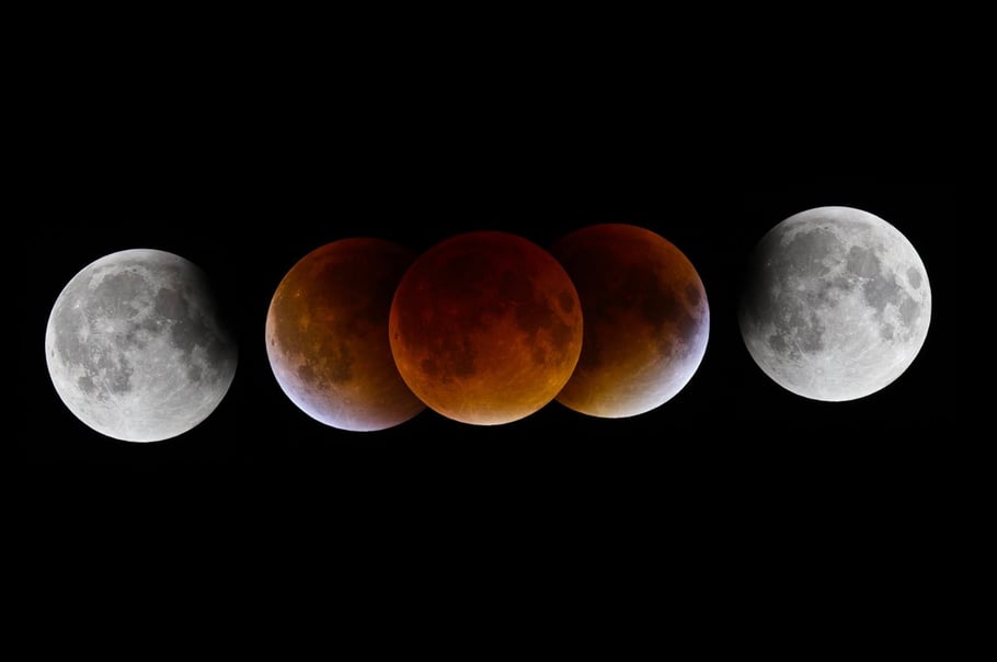 Un eclipse de Luna se produce cuando la Tierra se interpone entre el Sol y la Luna. La Tierra proyecta su sombra en el espacio, oscureciendo la Luna y tornándola de un color rojizo.