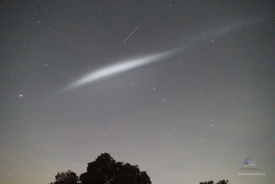Es la primera vez que vemos algo así de extraño. ¿Qué puede ser? no lo sabemos, pero creemos que puede tratarse de una etapa de algún cohete o incluso venteo o la pérdida de combustible de algún cohete.